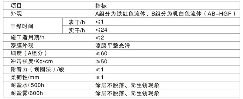 优良的防锈性能和耐油、耐水、耐盐水、耐溶剂性能,漆膜坚韧致密与底材有良好的附着力,施工方便、无环境污染,与环氧、聚氨酯、橡胶、乙烯树脂等面漆具有良好的配套性和层间附着力。